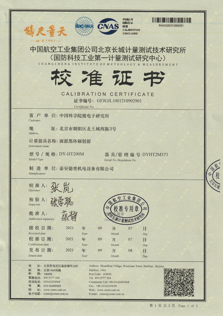 | 上一條:四川校聯(lián)計量檢測有限公司-黑體輻射源 | 下一條:溫濕度檢定箱(-5~65℃)校準(zhǔn)證書 |