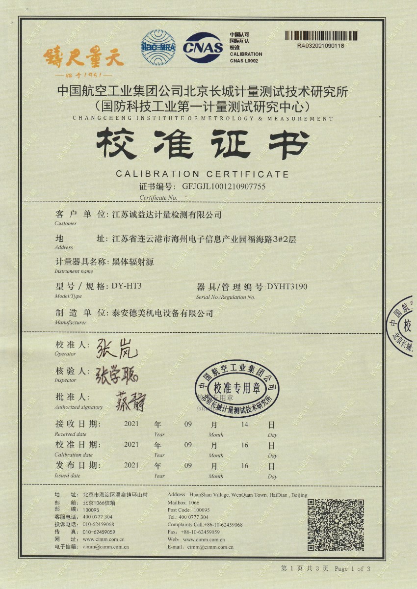 江蘇誠益達計量檢測有限公司-黑體輻射源 2021-9-29 本文被閱讀 15207 次