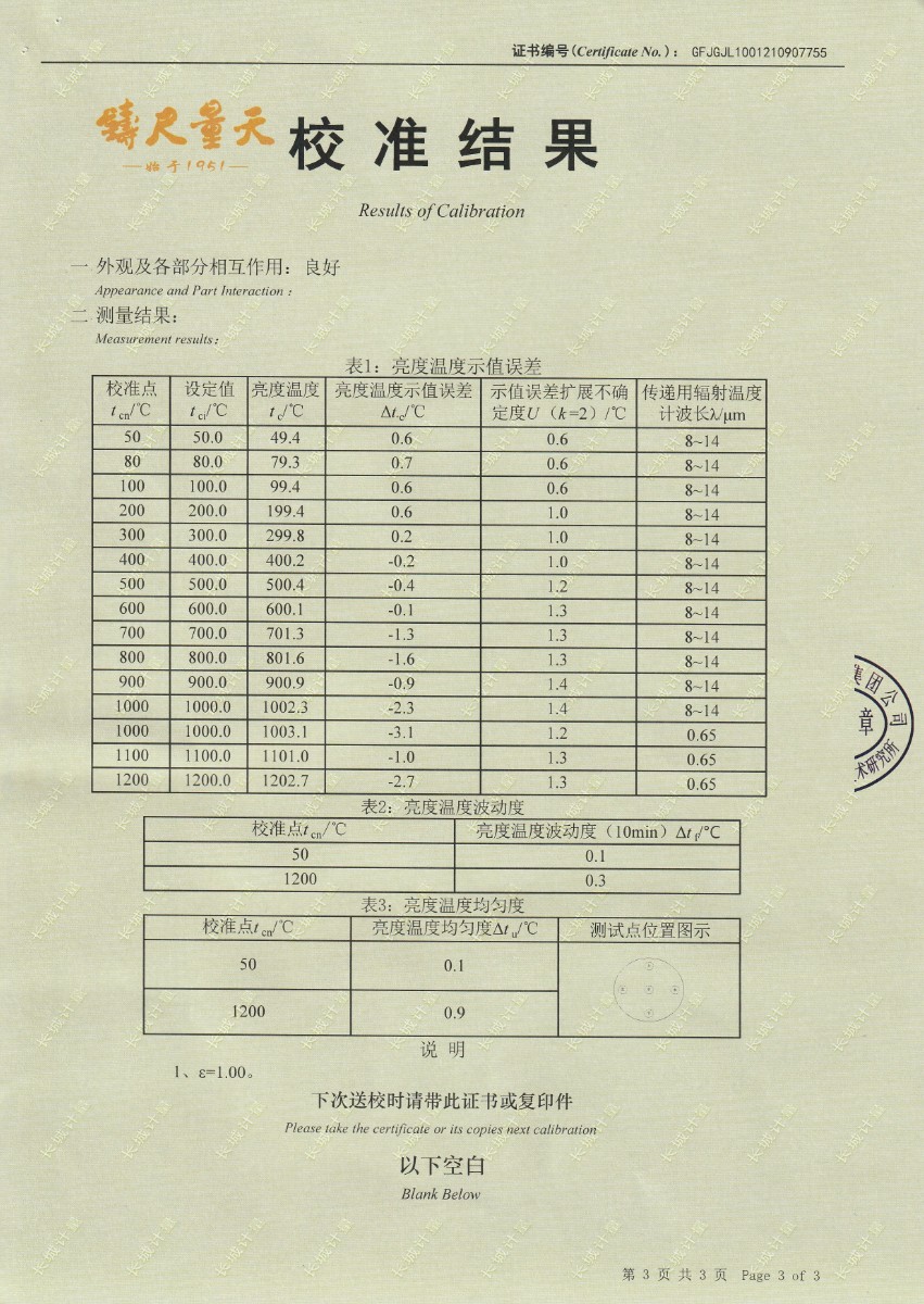 上一條:中國科學(xué)院微電子研究所-面源黑體輻射源下一條:溫濕度檢定箱(-5~65℃)校準(zhǔn)證書