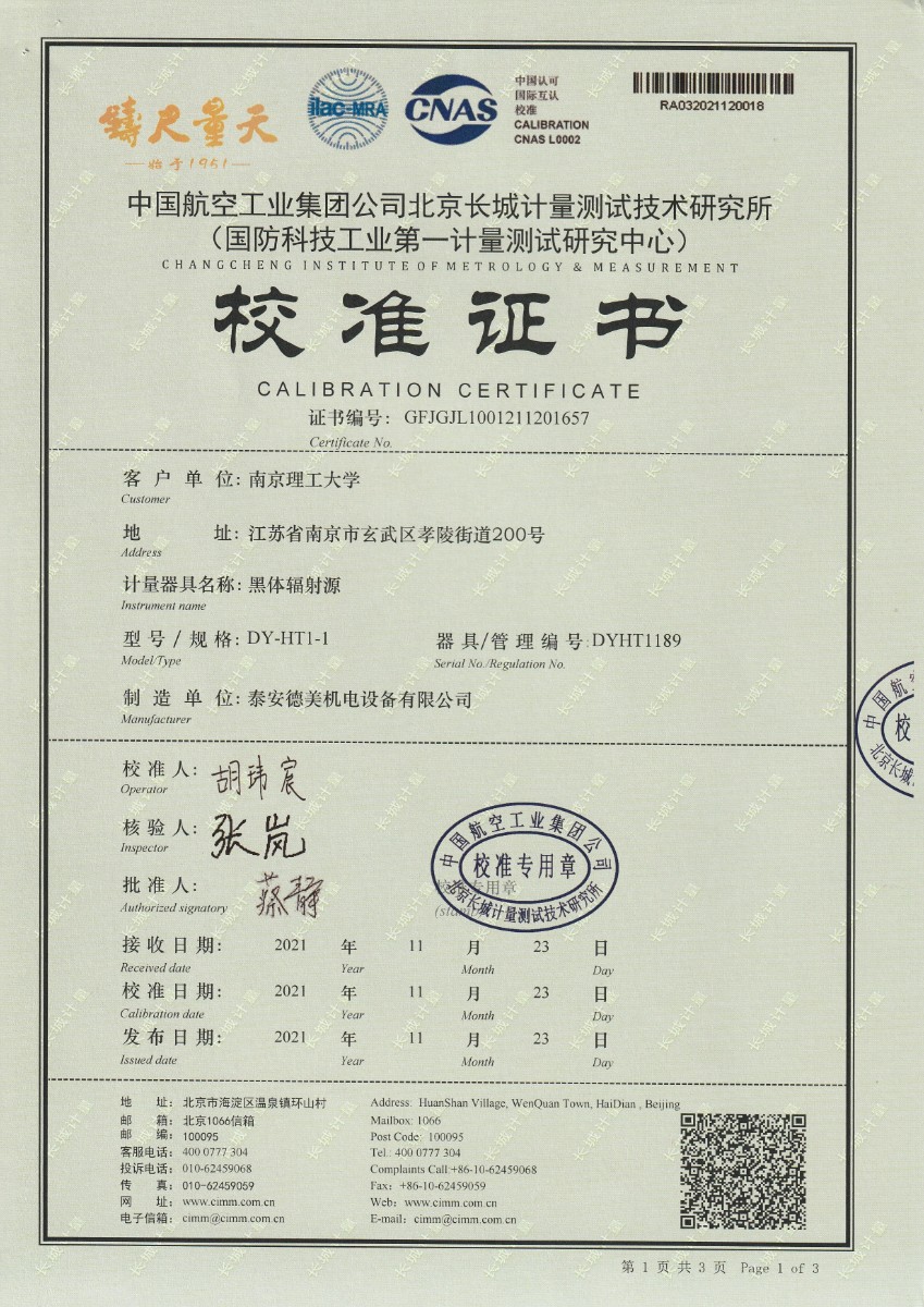 | 上一條:南京理工大學(xué)-黑體輻射源校準(zhǔn)證書(shū)25℃ | 下一條:便攜式干體爐(-30-150℃)校準(zhǔn)證書(shū) |