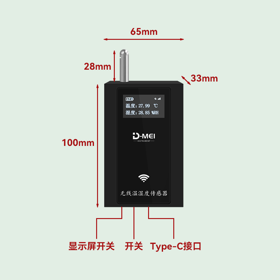 屏幕顯示信息 | 實(shí)時(shí)溫度、濕度、剩余電量 |