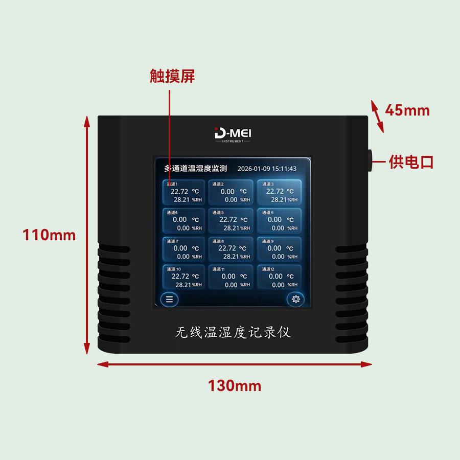 無線溫濕度采集系統(tǒng)是一款高精度、多通道、易部署的環(huán)境監(jiān)測解決方案,由無線溫濕度傳感器和無線接收器兩部分組成。系統(tǒng)采用瑞士Sensirion原裝溫濕度探頭,結(jié)合2.4G無線通信技術(shù)與工業(yè)級顯示模塊,支持多只傳感器同步監(jiān)測,適用于實(shí)驗(yàn)室、倉儲、農(nóng)業(yè)大棚、機(jī)房等多場景的溫濕度實(shí)時(shí)監(jiān)控與數(shù)據(jù)追溯。