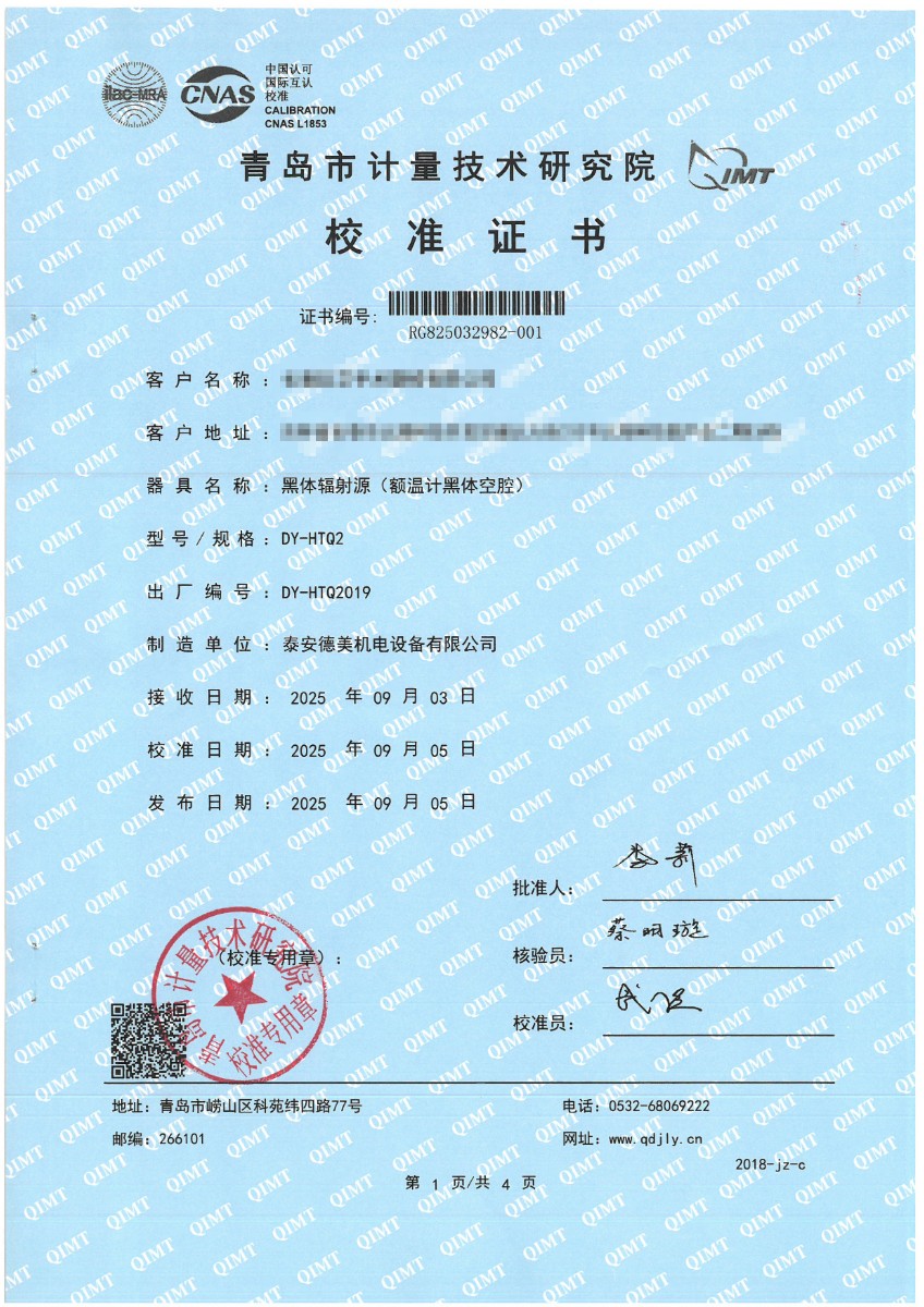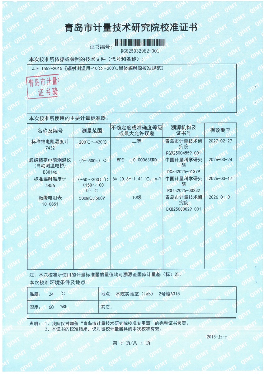 額溫計黑體空腔-校準(zhǔn)證書 2025-9-23 本文被閱讀 968 次