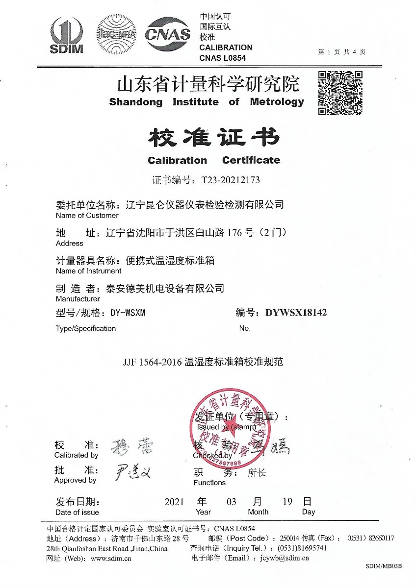 | 上一條:北京市基典恒校準(zhǔn)技術(shù)研究所有限公司-溫濕度檢定箱 | 下一條:冷鏡式露點(diǎn)儀校準(zhǔn)證書(shū) |