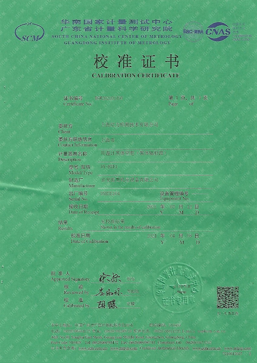 | 上一條:上海紅力檢測(cè)技術(shù)有限公司-額溫計(jì)黑體空腔 | 下一條:冷鏡式露點(diǎn)儀校準(zhǔn)證書 |