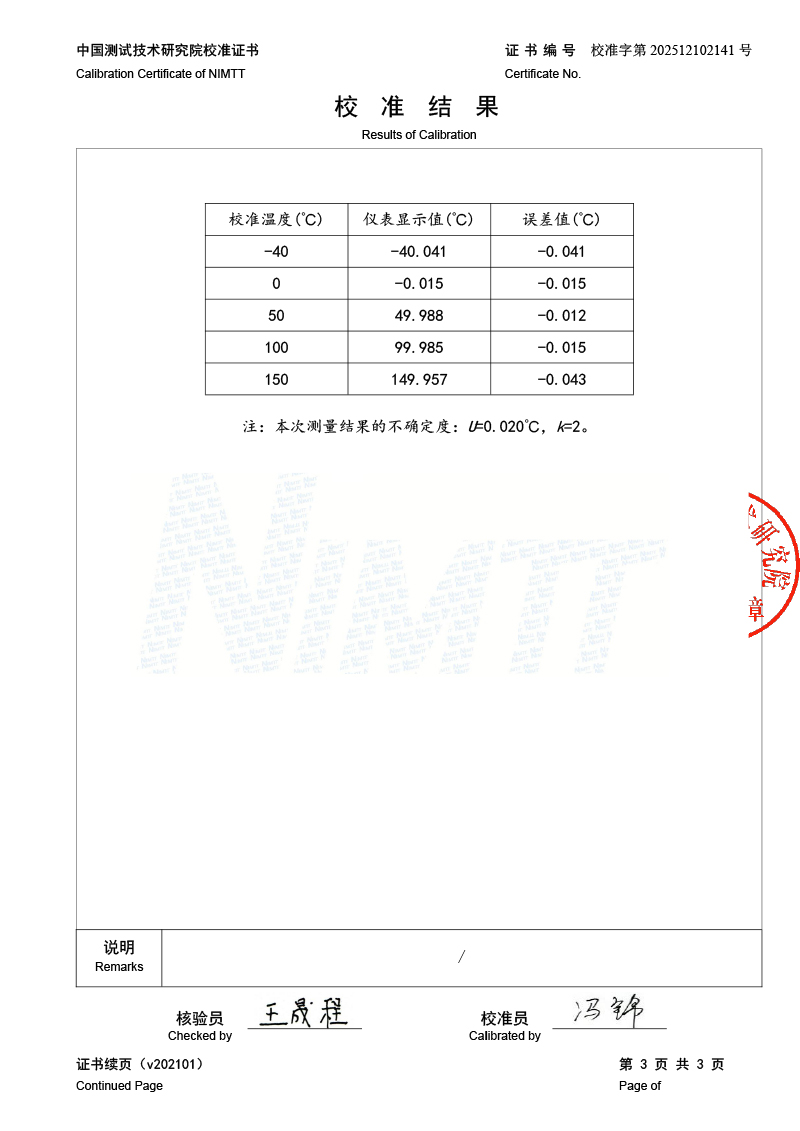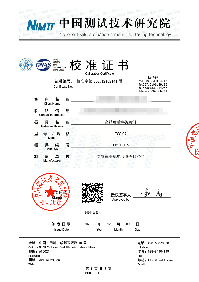 高精度數字溫度計校準證書 2025-12-11 本文被閱讀 256 次