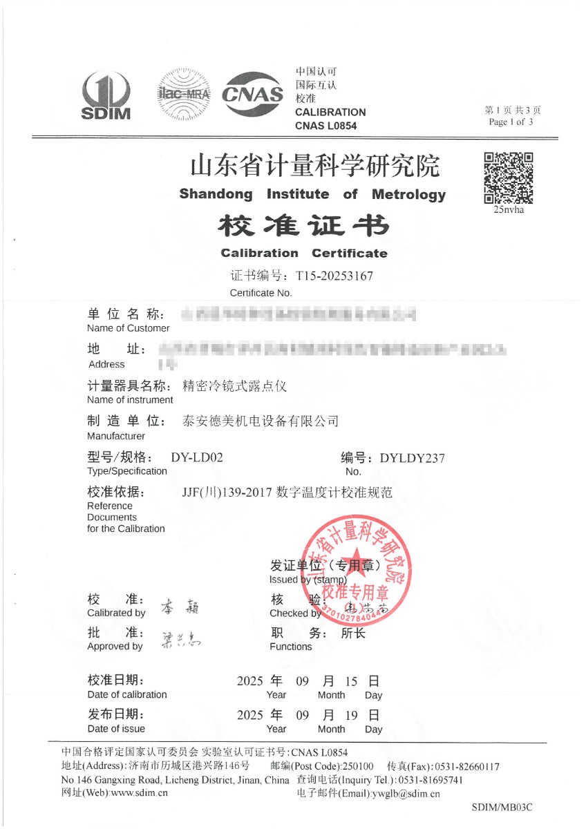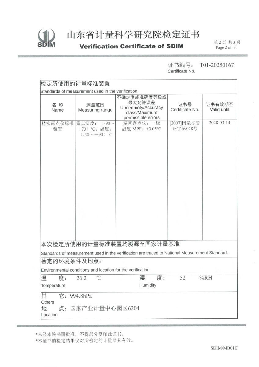 冷鏡式露點儀檢定、校準證書 2025-9-23 本文被閱讀 582 次