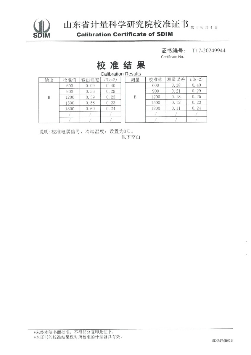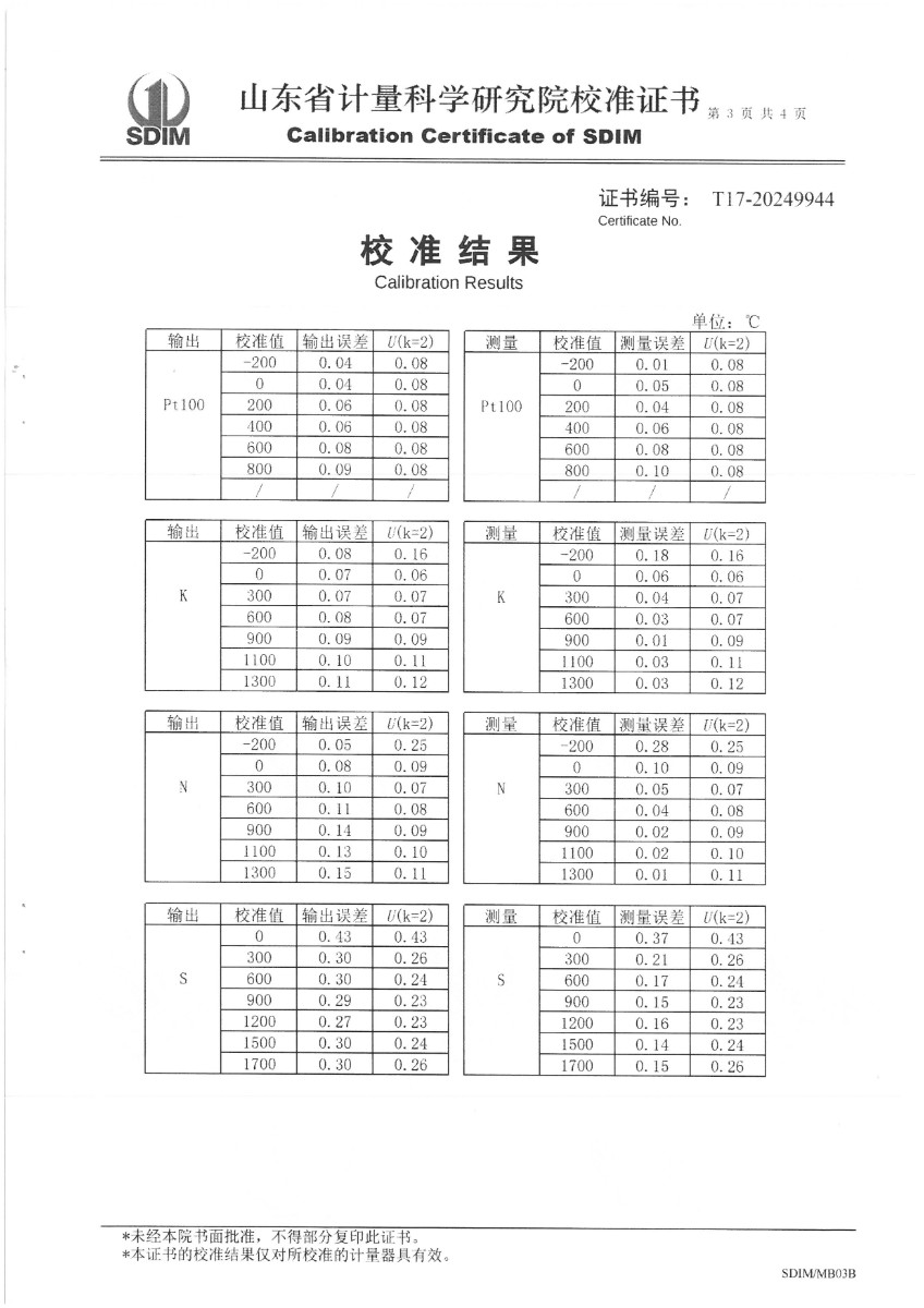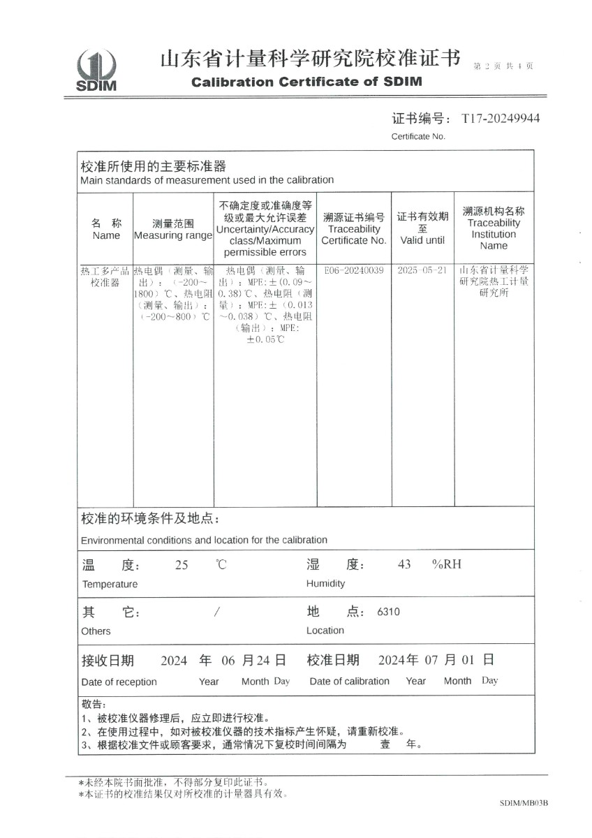 便攜式過程校驗儀(-200~1800℃)校準證書 2024-7-5 本文被閱讀 5863 次