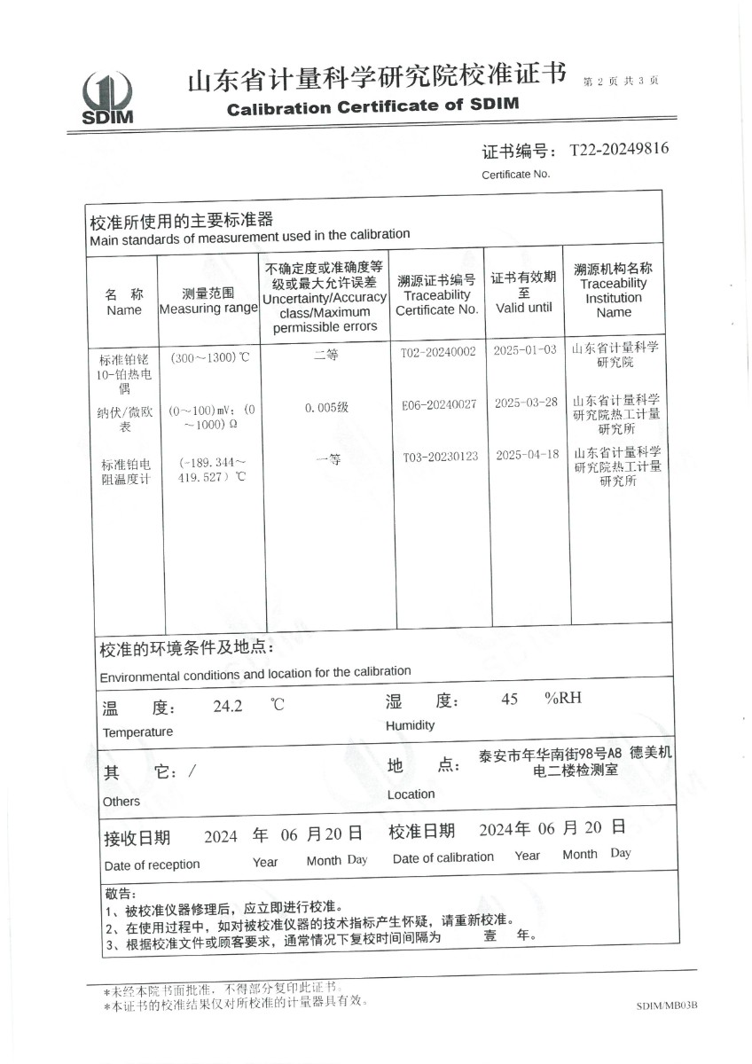 上一條:廉金屬熱電偶檢定爐(300~1200℃)校準證書下一條:便攜式干體爐(-30-150℃)校準證書