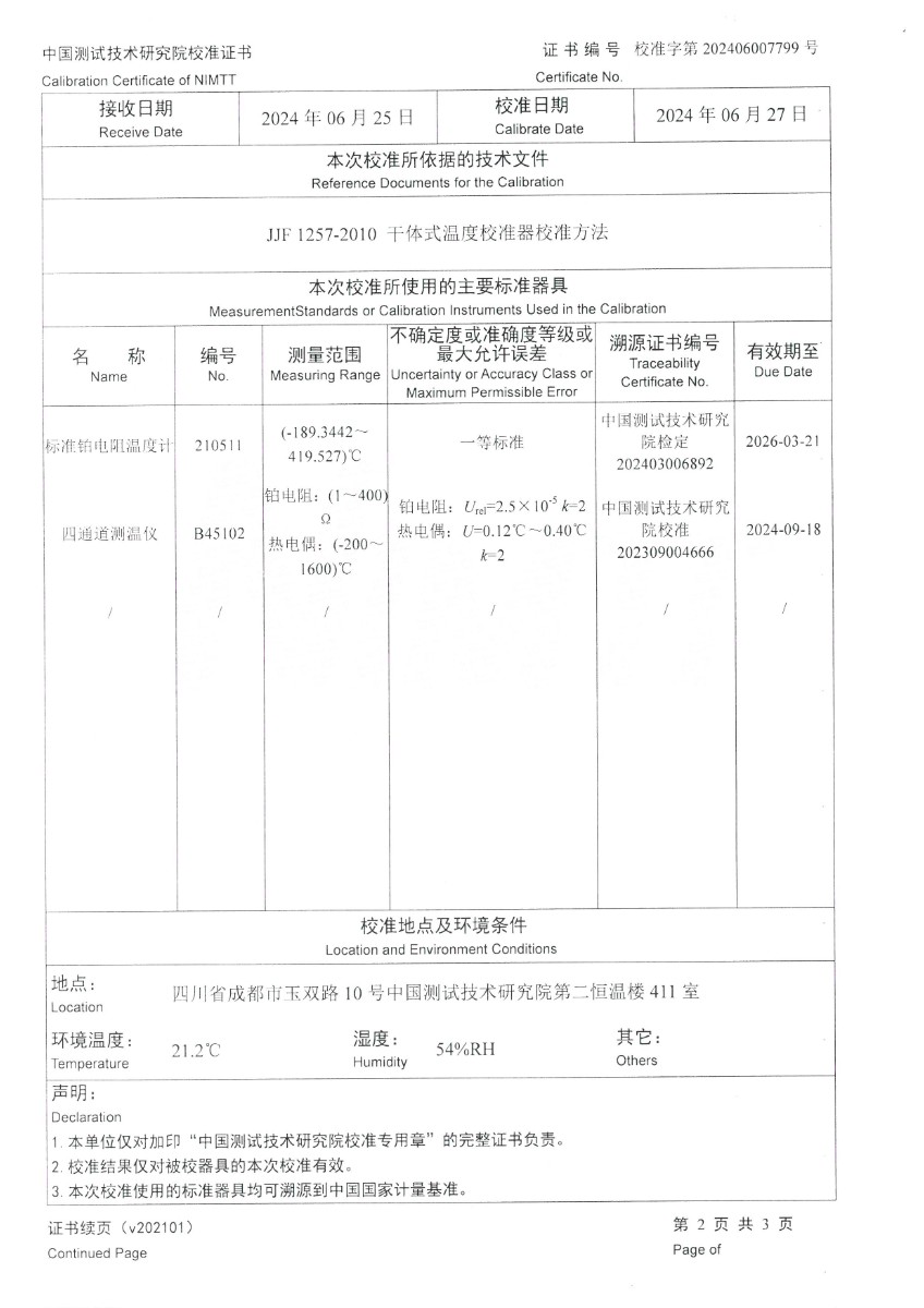 | 上一條:高溫干體爐(300~1200℃)校準(zhǔn)證書(shū) | 下一條:便攜式干體爐(-30-150℃)校準(zhǔn)證書(shū) |