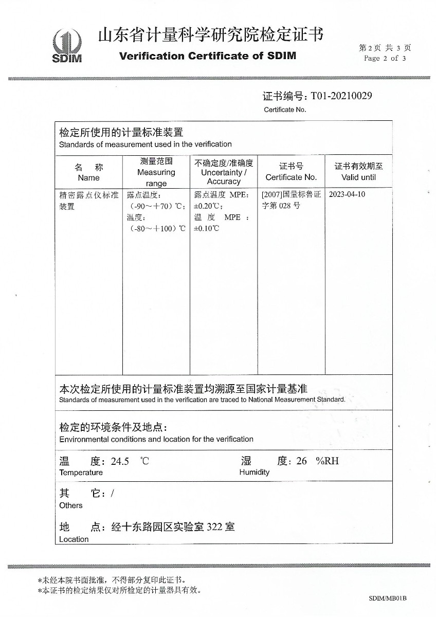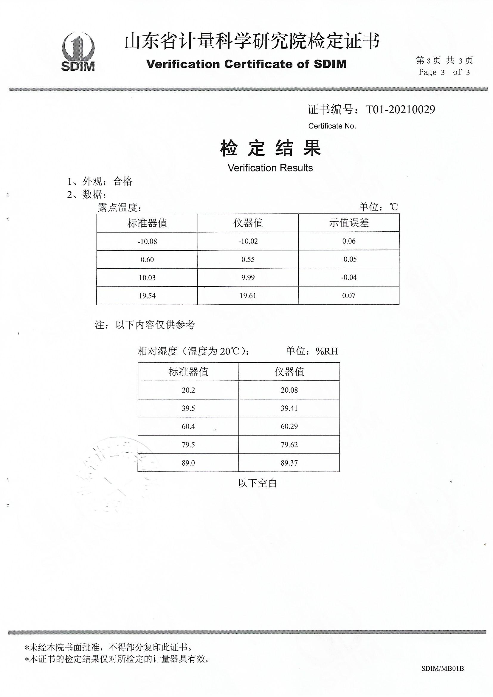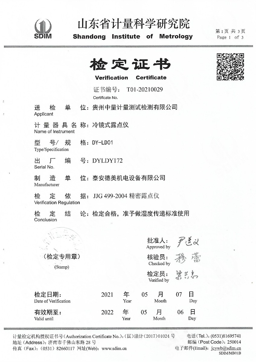 貴州中量計量測試檢測有限公司-冷鏡式露點儀檢定證書 2021-5-15 本文被閱讀 14850 次