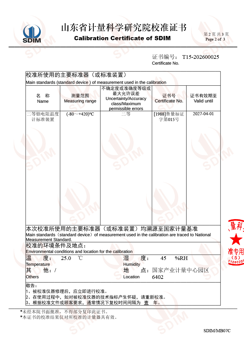 | 上一條:溫度數(shù)據(jù)采集儀校準(zhǔn)證書 | 下一條:水三相點瓶凍制與保存裝置校準(zhǔn)證書 |