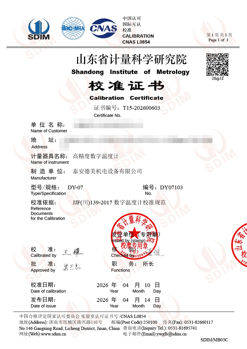 高精度數(shù)字溫度計-校準(zhǔn)證書 2026-4-14 本文被閱讀 20 次