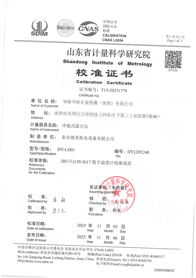 冷鏡式露點(diǎn)儀校準(zhǔn)證書(shū) 2025-11-7 本文被閱讀 123 次