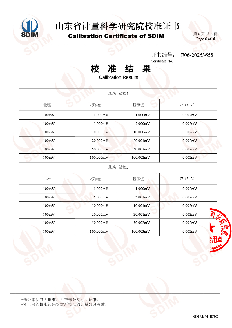 | 上一條:黑體爐校準證書 | 下一條:溫度數(shù)據(jù)采集儀校準證書 |