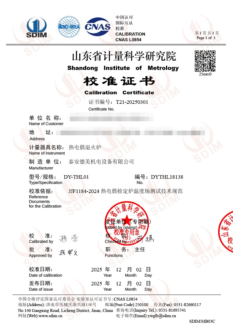 熱電偶退火爐校準(zhǔn)證書 2025-12-4 本文被閱讀 394 次