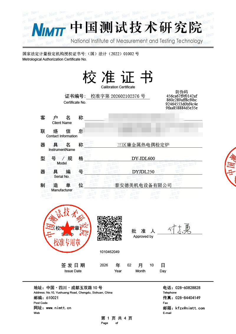 三區(qū)廉金屬熱電偶檢定爐-校準證書 2026-2-11 本文被閱讀 13 次